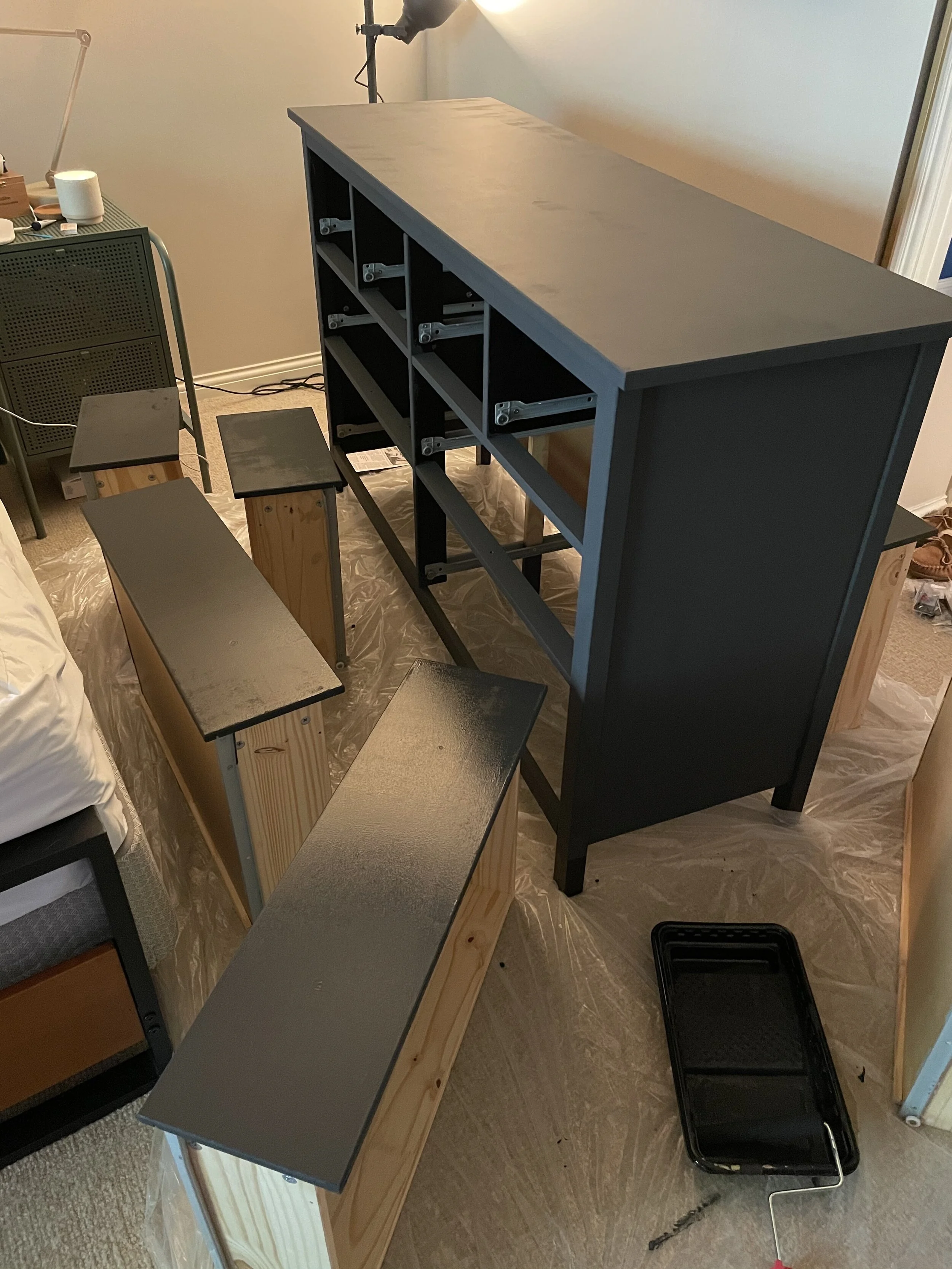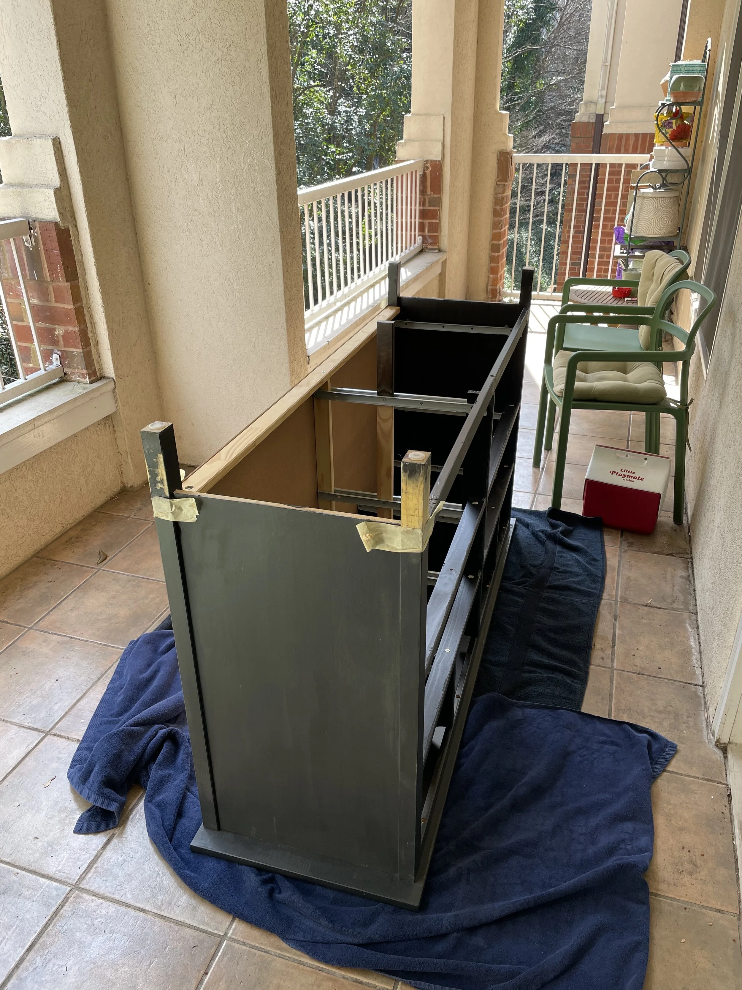 Now for the fun part… paint! I used Rust-Oleum Chalked paint from Home Depot because I liked the matte, velvety look. I did 2 coats of the color “charcoal” and switched between a paint brush and a 1/4 nap roller for a smoother finish. The color wasn’t too different from the original black, but it certainly freshened it up!